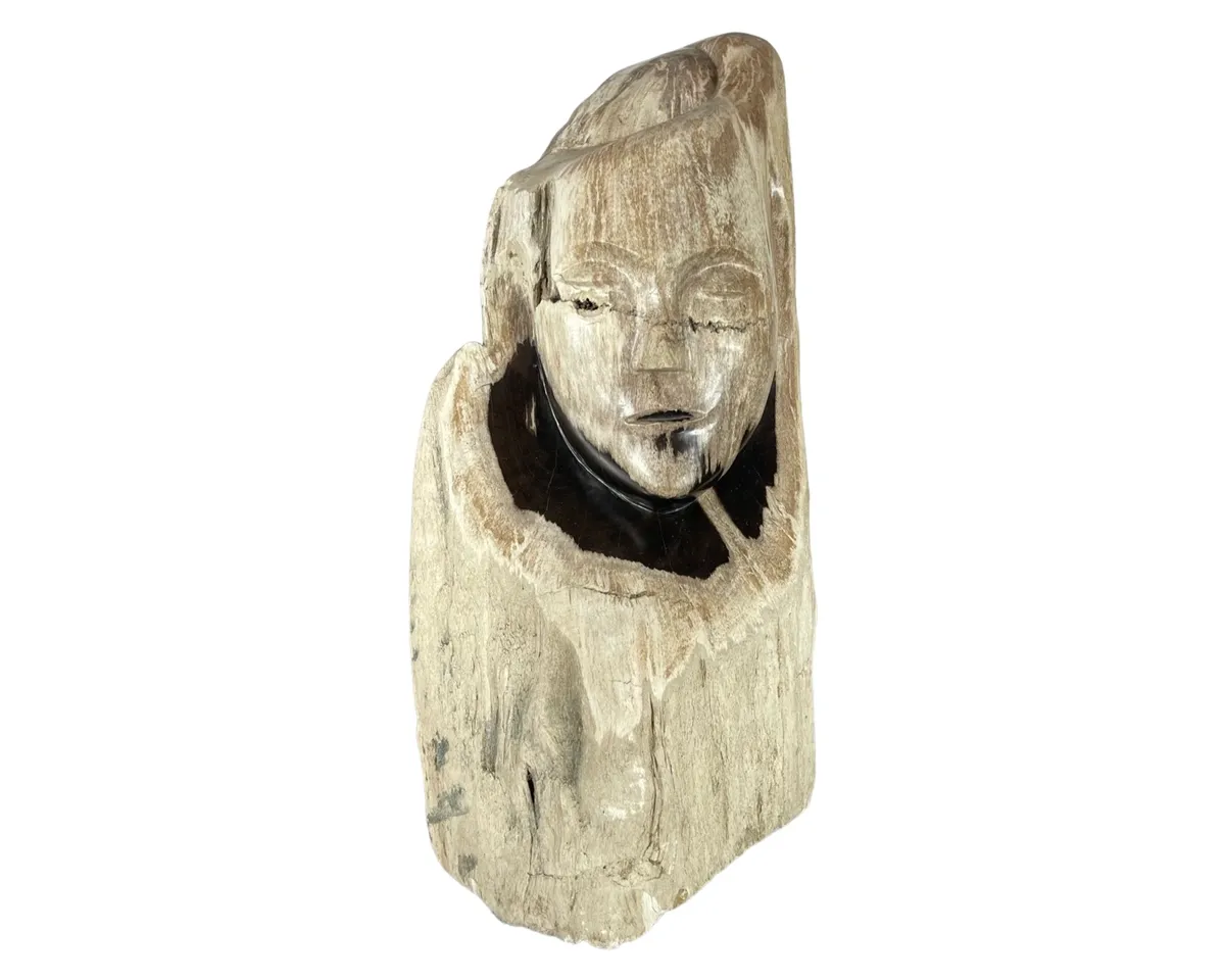 Petrified Wood Face Sculpture
