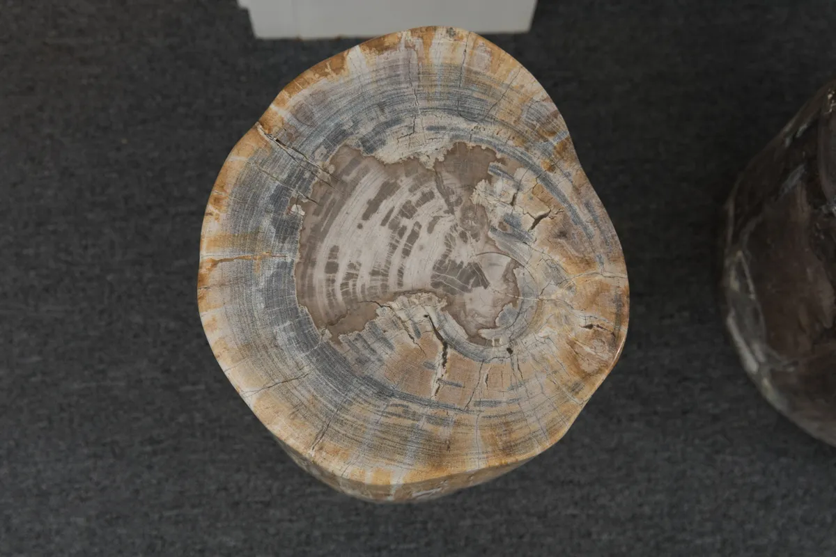 Fòssięl excavated, carved, and polished ancient petrified wood dating back to 20-25 million-year-old to create a hyper unique and never offered before piece for the home to accommodate a rustic pallet. The light wood and its raw edges perfectly lodge individual comfort.